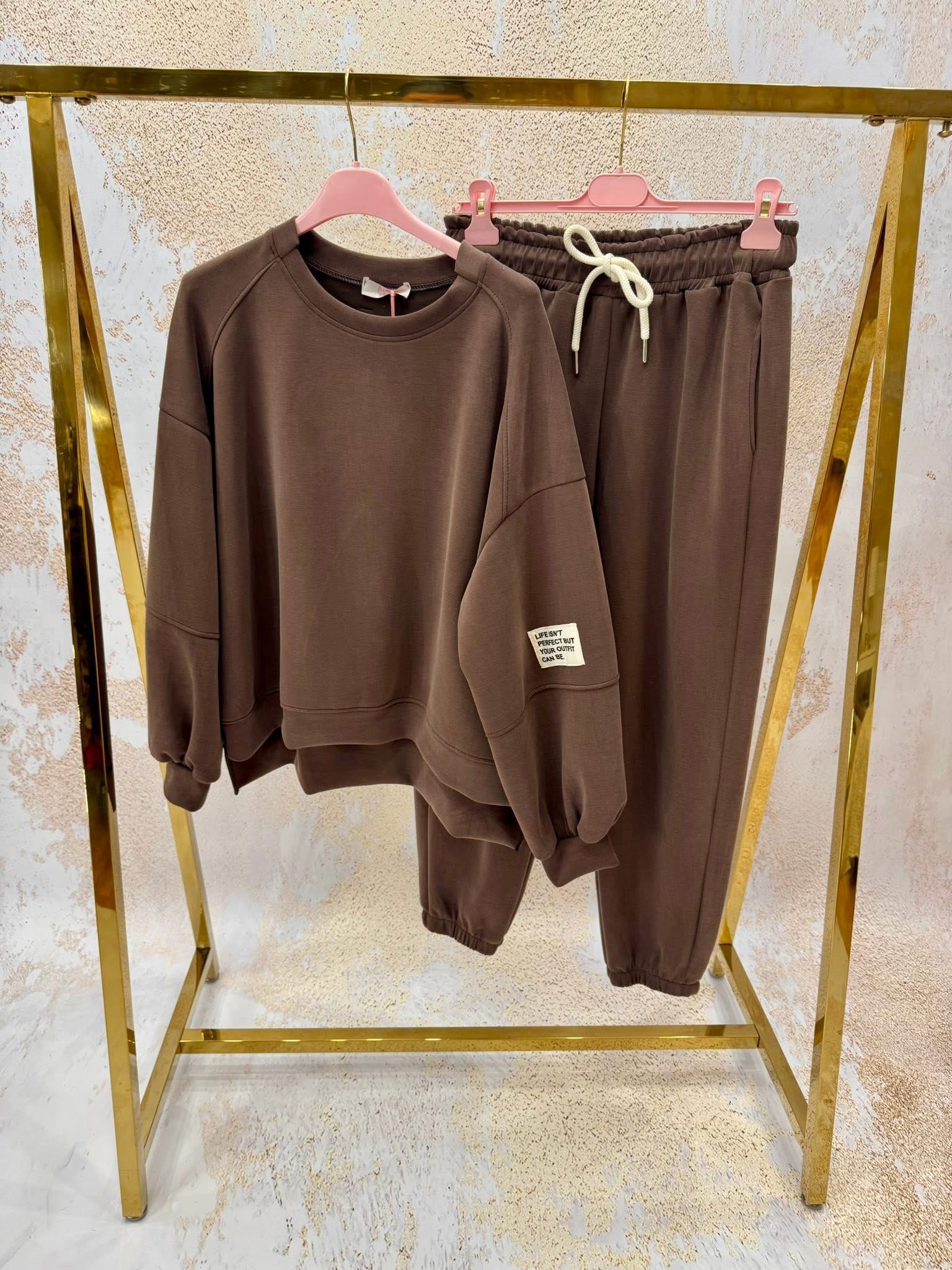 Drogie Panie, do sprzedania super komfortowy dres włoskiej marki Azara. Nowy, z metką. Odcień czekoladowy. Materiał lekki, milutki do ciała. Skład: 46% wiskoza, 45 % poliester, 6% elastan. Dres jest przepiękny , robi wrażenie.