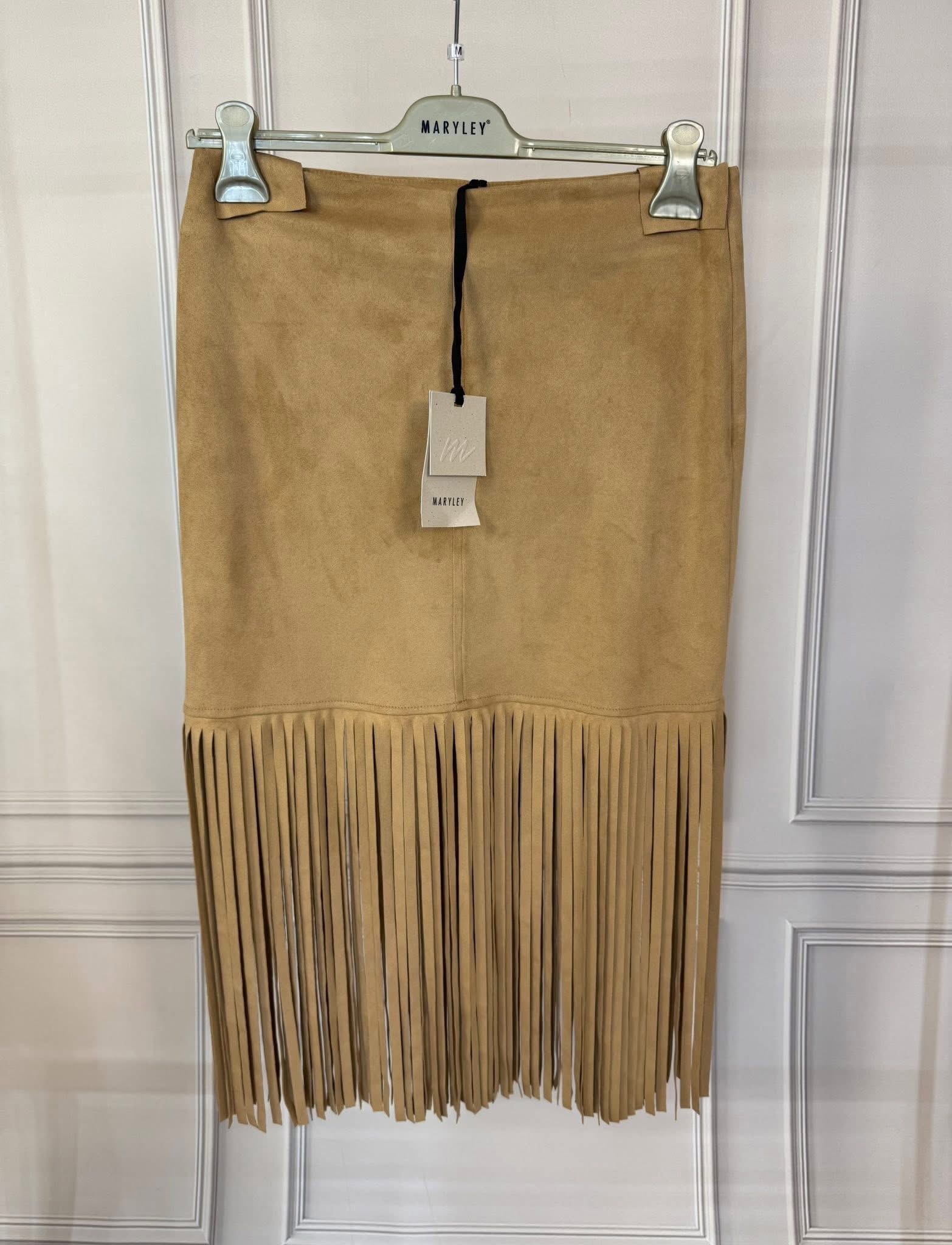 Drogie Panie, do sprzedania komplet w stylu boho z włoskiej marki Marley. Nowy, z metkami. Bomberka plus spódnica. Imitacja zamszu. Lekki, miły do ciała. Odcień kamelowy. Rozciąga się.