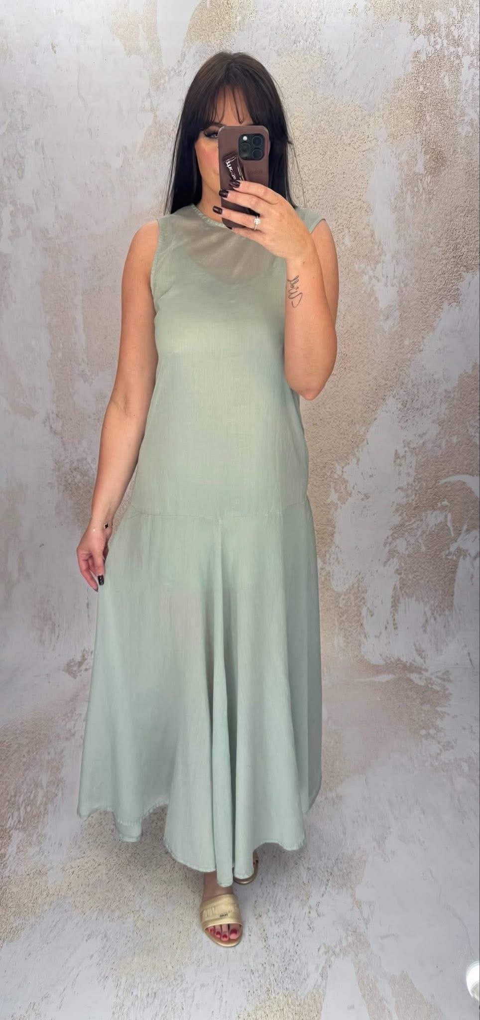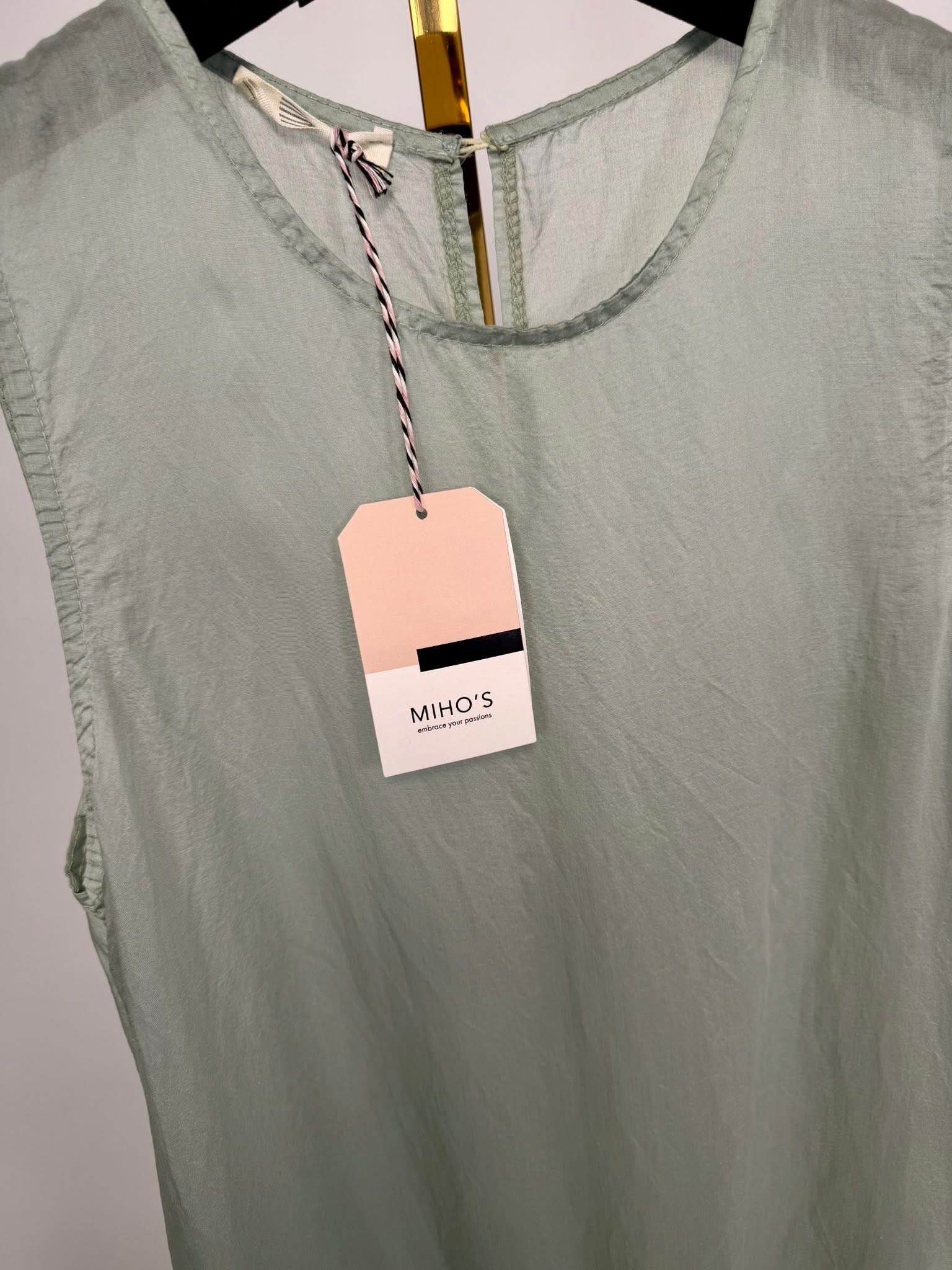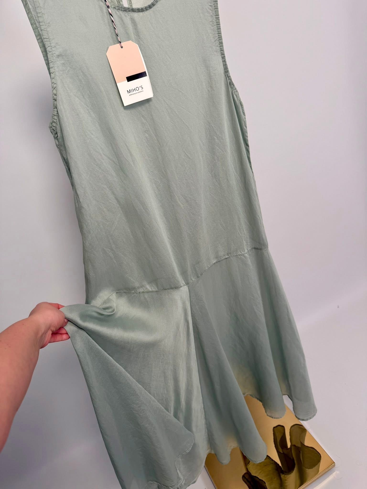 Drogie Panie, do sprzedania przepiękna sukienka włoskiej marki Miho’s. Nowa, z metką. Cudny odcień szałwiowy. . Lekka, miła dla ciała, zwiewna. Idealna na lato. Skład: 85% lyocel, 15% poliester. Na codzień i na okazje.